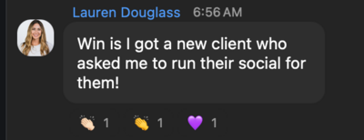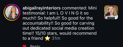 "Since joining Content Club, I've gotten consistent with going to the gym, doing morning pages, sending two emails a week to my email list and posting five times a week on LinkedIn, which has given me so much more confidence in my business and myself."