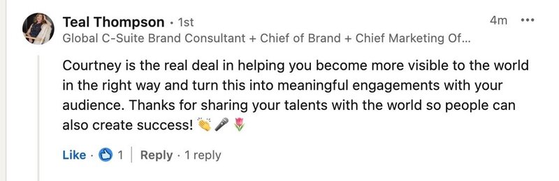 She’s known for helping creators and executives overcome the fear of being seen—and the cringe that comes with it—to build personal brands that people trust, remember, and leverage into new opportunities. Courtney has led transformative live personal brand cohorts, ghostwritten for top tech executives, and consulted for major companies on marketing, social media strategy, and personal branding.